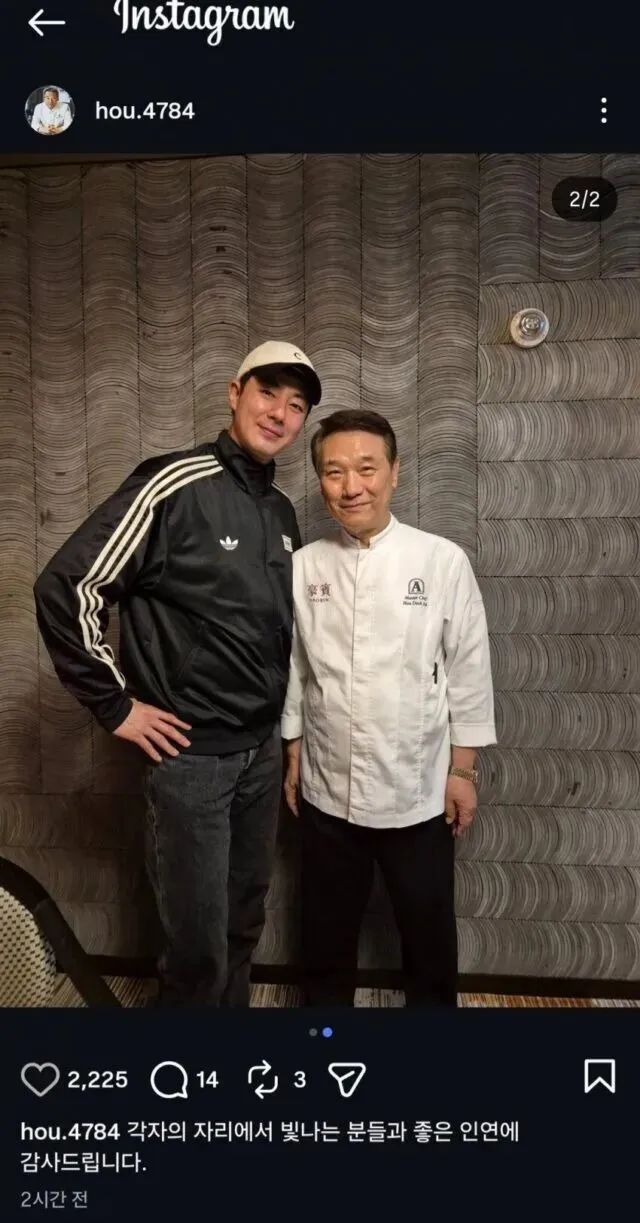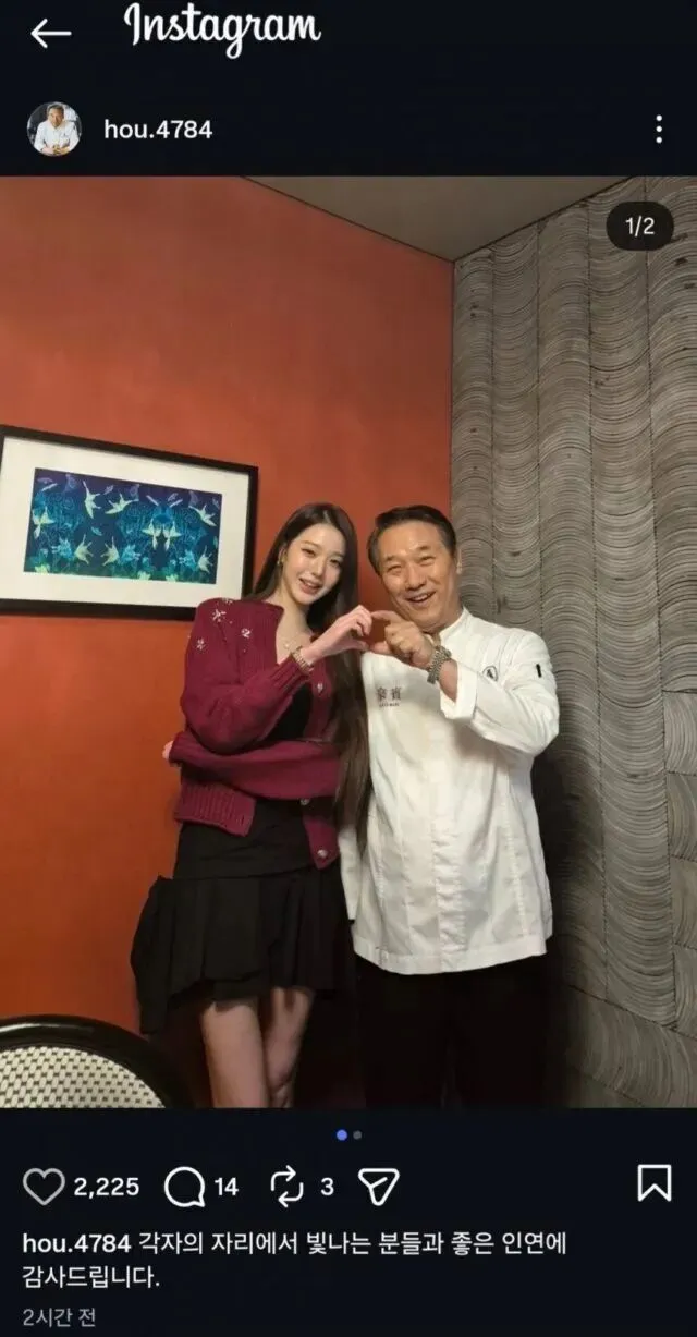 这位名厨在其个人社交账号上发布了一组明星顾客到访的合集照片,其中分别包含了赵寅成和张元英的单人影像。
