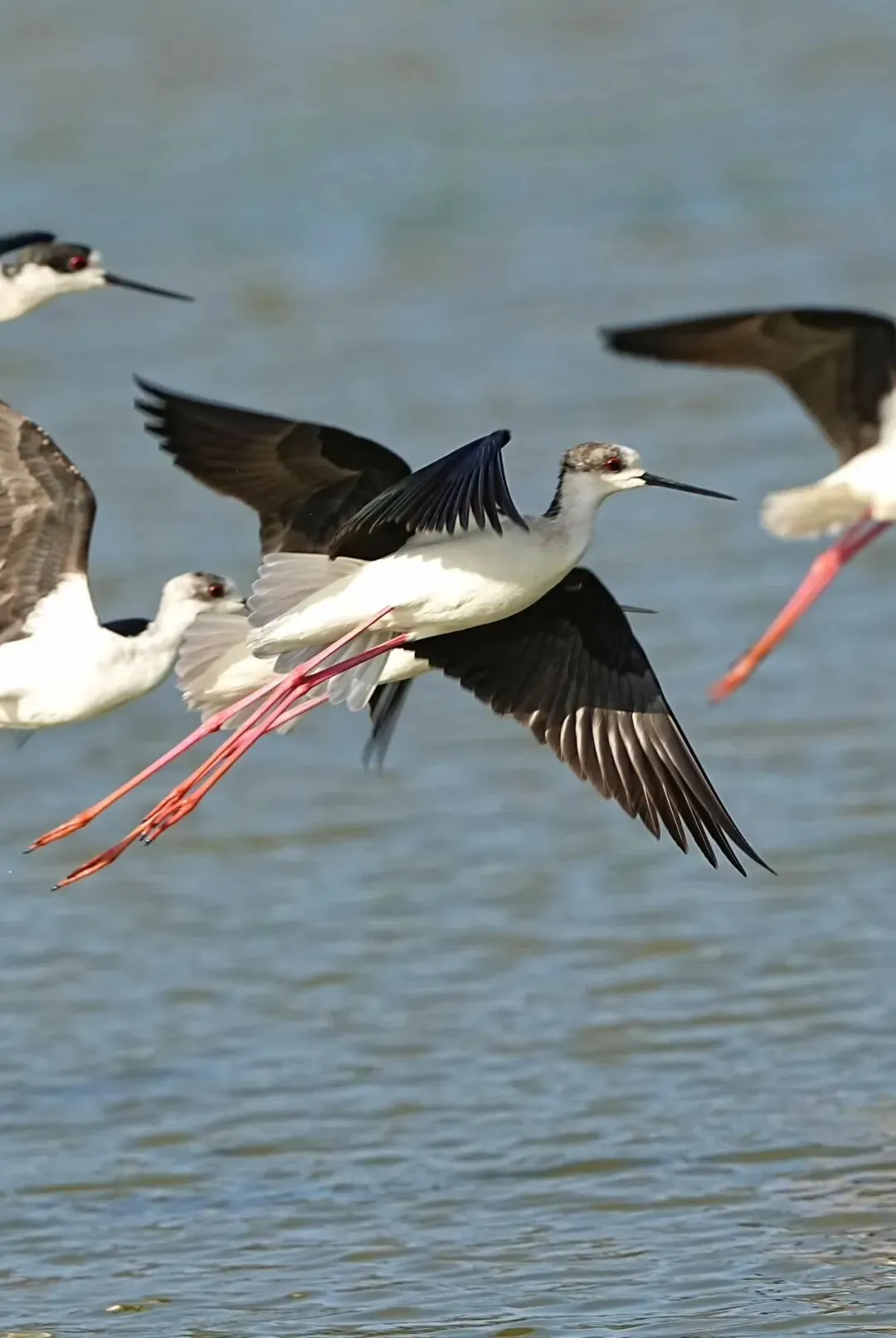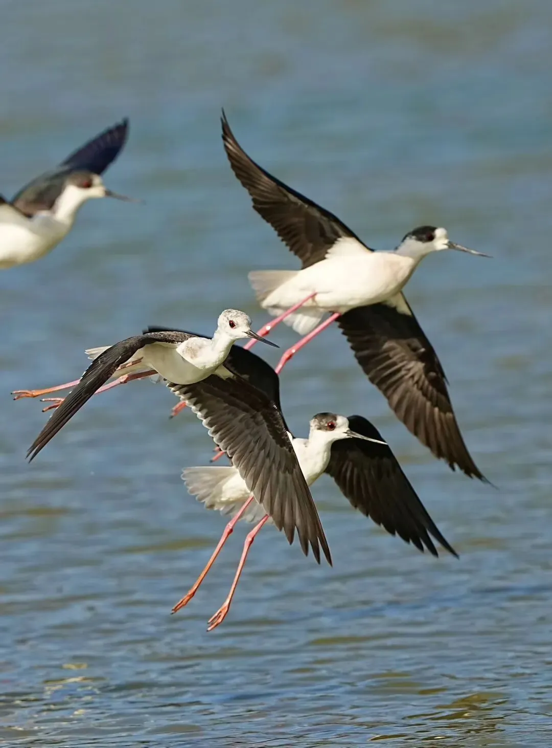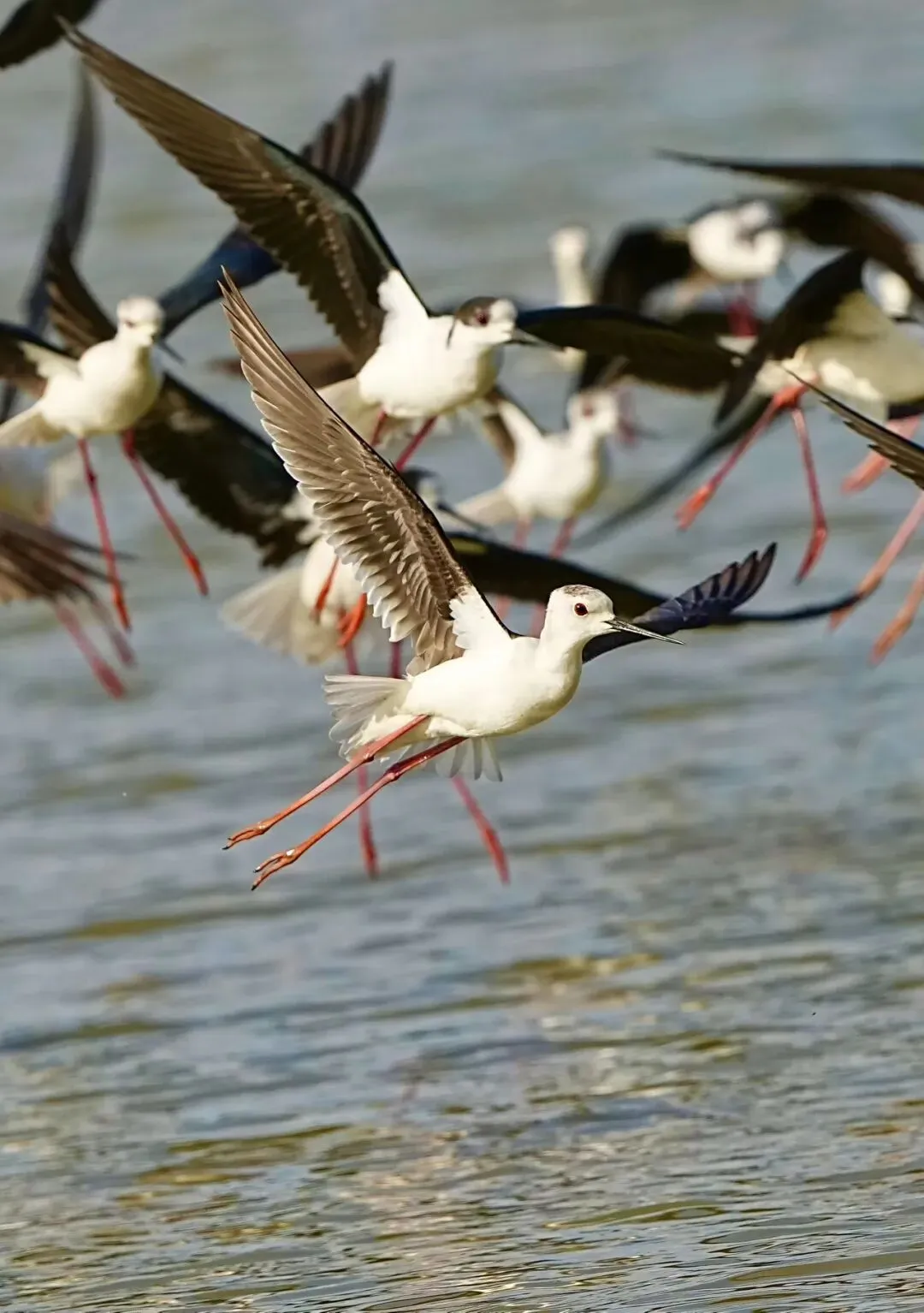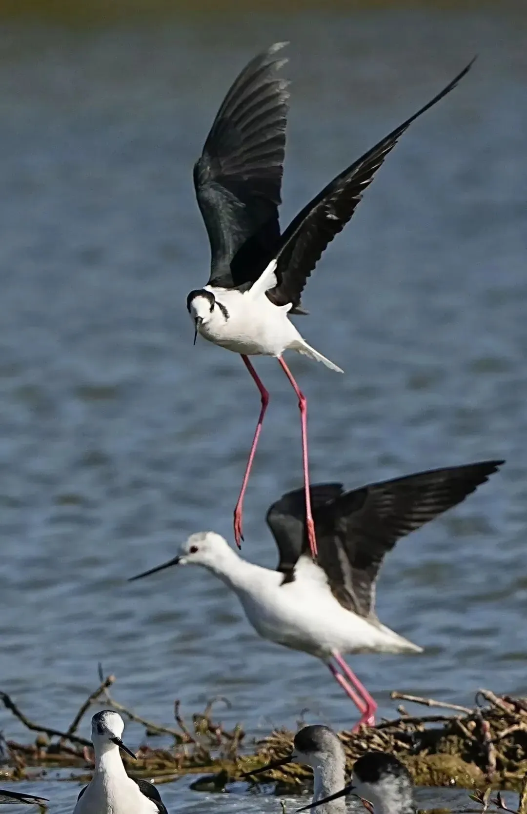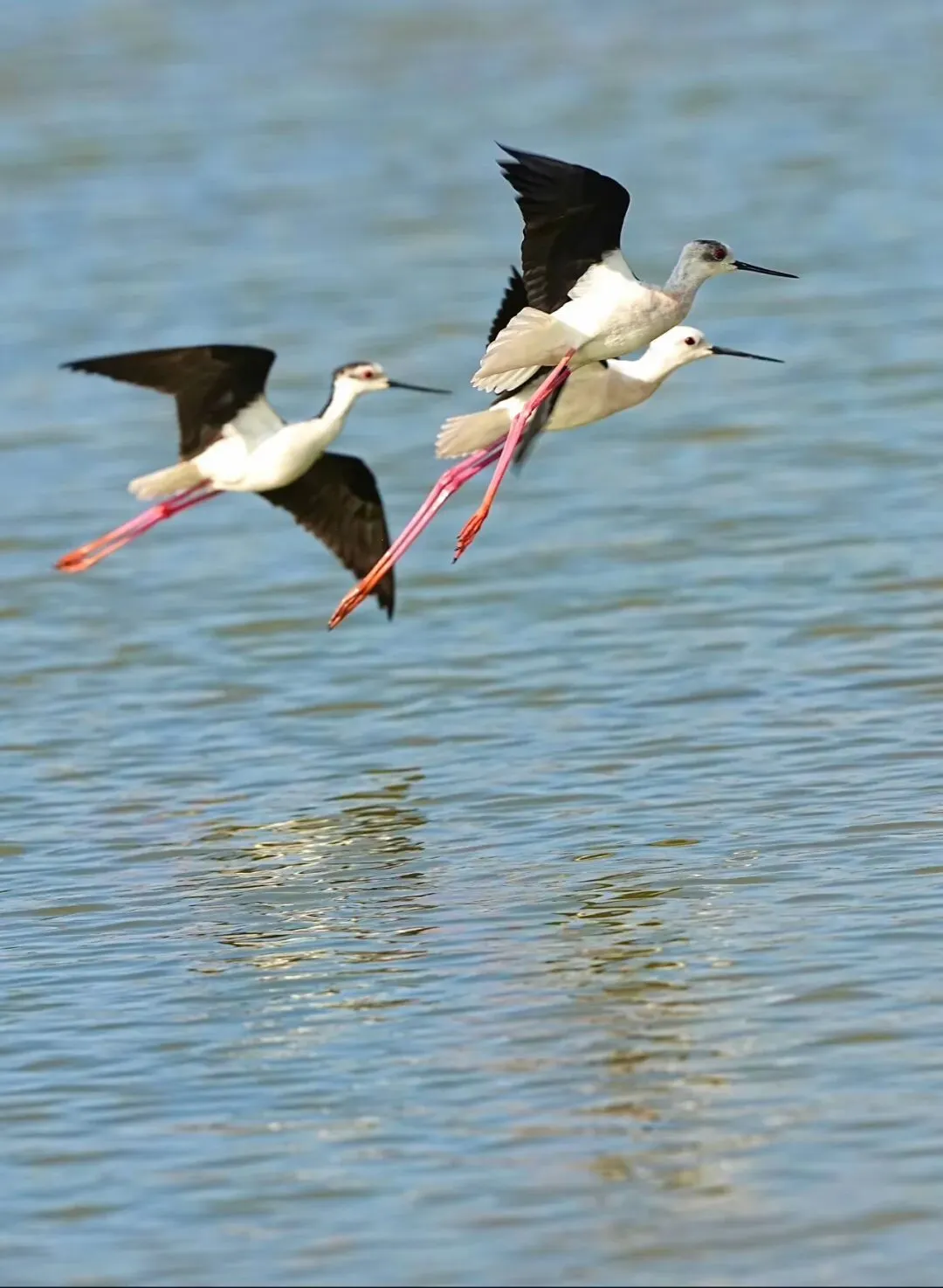 鸟届超模大长腿是黑翅长脚鹬的别号,这长长的,性感的,粉红色的长腿,黑色的翅羽,白色的腹部,黑白红三色搭配🉐️恰到好处,看着也很养眼。 这里鱼虾丰富,充足的食物,这群长脚鹬没有食物的忧虑,天天好吃好喝着,享受😎着着春天的暖阳🌞,日子过得悠闲舒适。 走秀是每天必须上演的节目,充满了仪式感,长腿林立,靓羽霓裳,让站在鱼塘边上的几只大苍鹭看花了眼。 春光明媚,春风拂面,长脚鹬倚仗鸟多势众,霸占了本属于白骨🦴顶鸡的鱼塘,白骨顶只能猥琐的蹲在犄角旮旯里小心地躲着仙女般存在的长脚鹬。 群体走秀的大场面颇为壮观,黑翅翻飞,红腿闪耀。靓瞎了白骨顶鸡的眼睛,一头扎进泥水里,不敢观看!