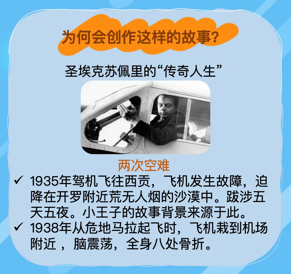 他是法国人,二战时期的空军飞行员,曾三次遭遇空难,其中一次在撒哈拉沙漠求生的经历,成为《小王子》的创作原型。