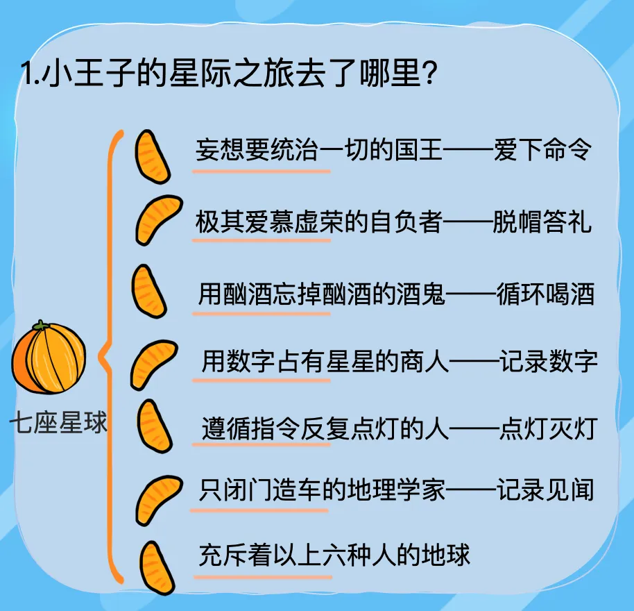 读情节:梳理小王子的旅程。