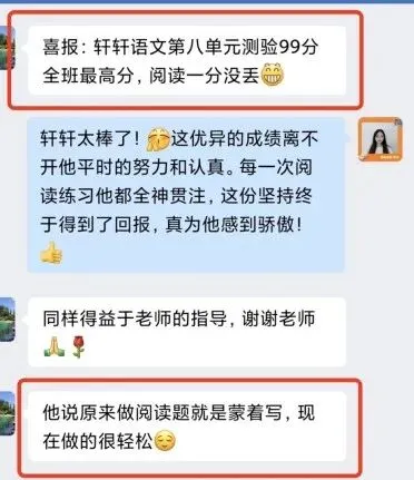 跟我上了一段时间课程的孩子们,作文次次满分、阅读理解一分不丢的孩子比比皆是……