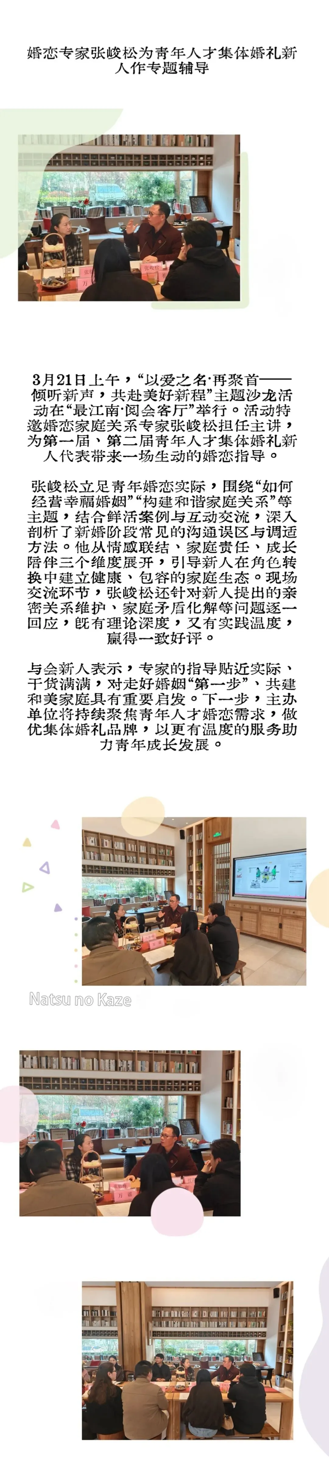 动态 | 婚恋专家张峻松为青年人才集体婚礼新人作专题辅导