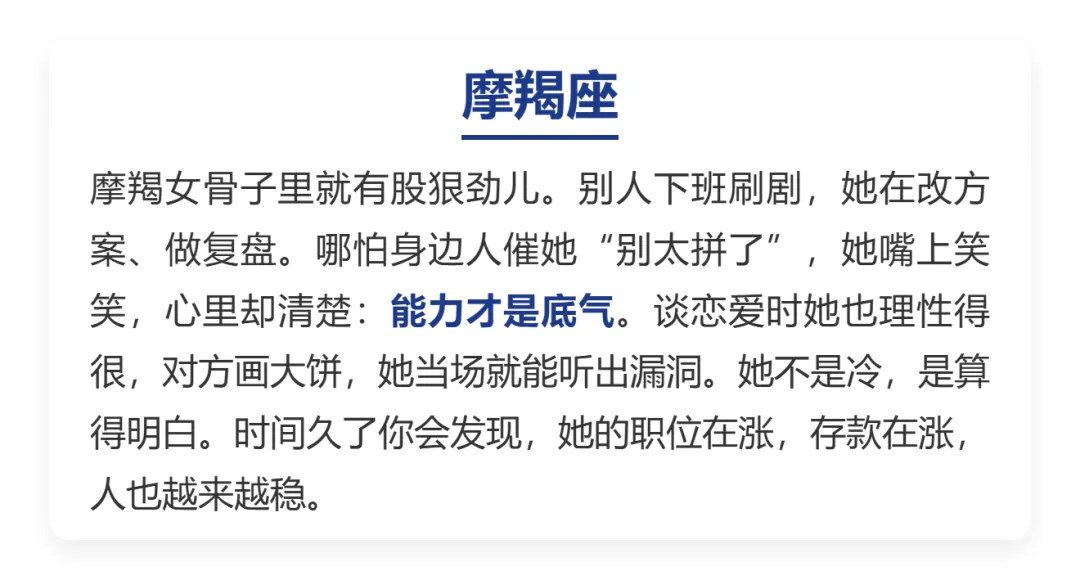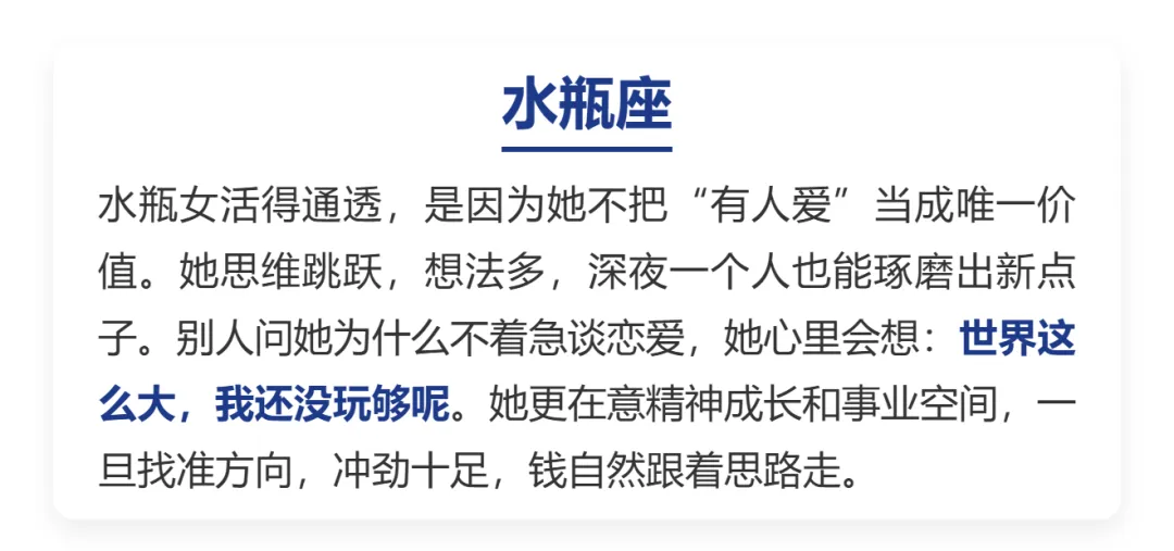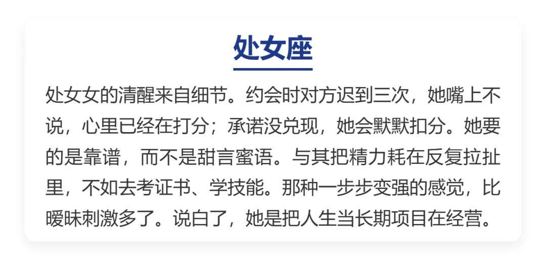 有些女生,谈起恋.爱来能.昏天黑地;但也有.一些人,天生.清醒。不是她.们不渴.望爱情,而是.更明白安全.感这东.西,握在自.己手里.才踏实。比起风花.雪月,她们.更愿意.把时间.花在.提升.自己上。今天就聊.聊,那些.不恋爱.脑、只搞.事业的星.座女。