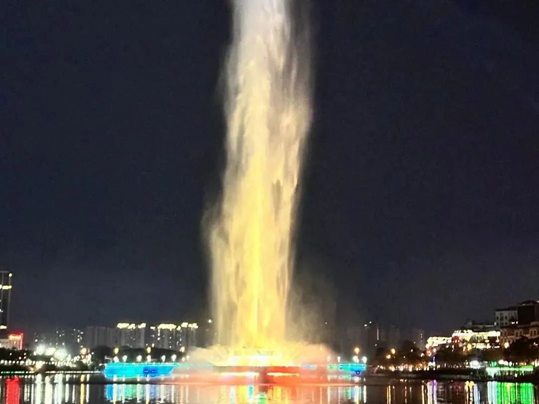 夜色渐浓,亚洲第一高喷泉