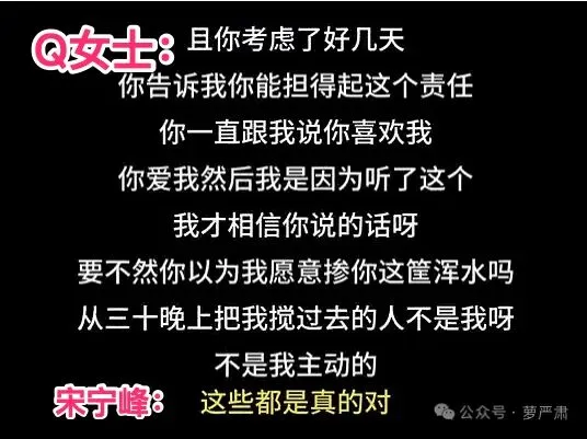 大瓜这几天大家都吃了,宋宁峰出轨Q女士。