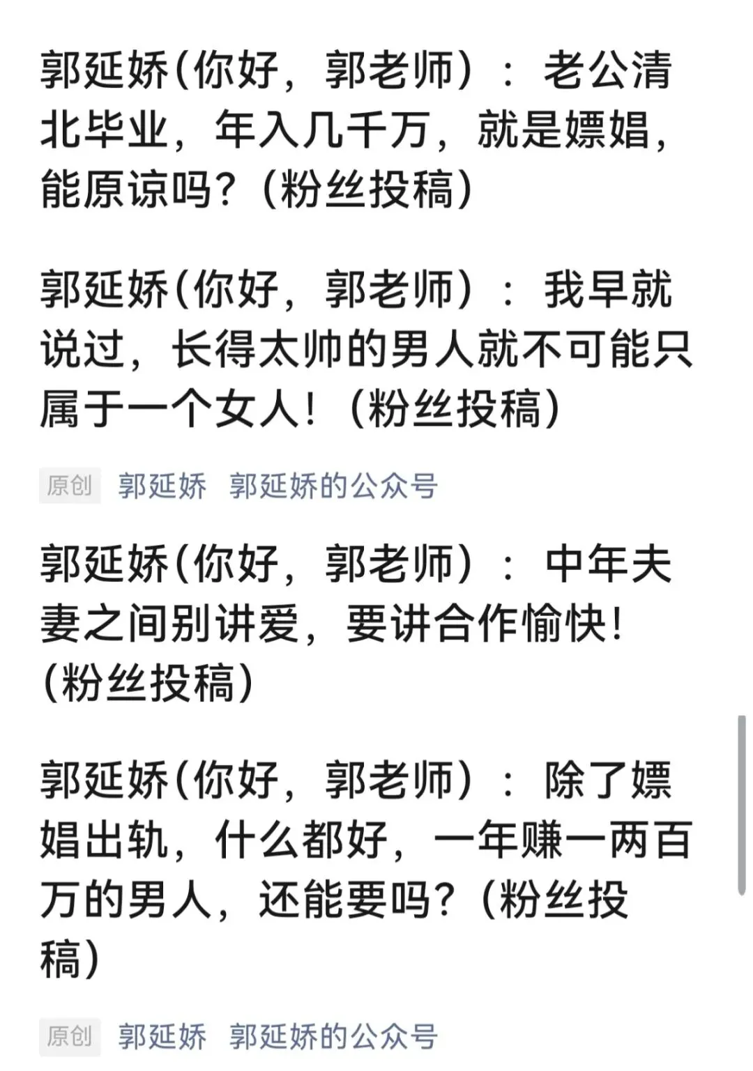 非常建议大家有时间去刷一刷郭延娇律师的直播和公众号的文章,见识一下人类物种的多样性。