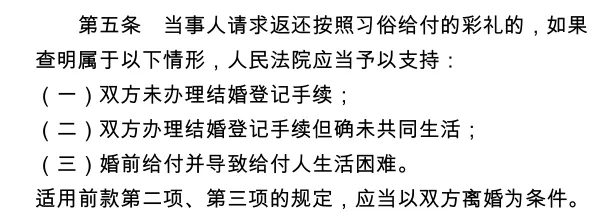 主要看双方各自居住地,恋爱交往地、缔结婚姻地是否有彩礼的习俗。