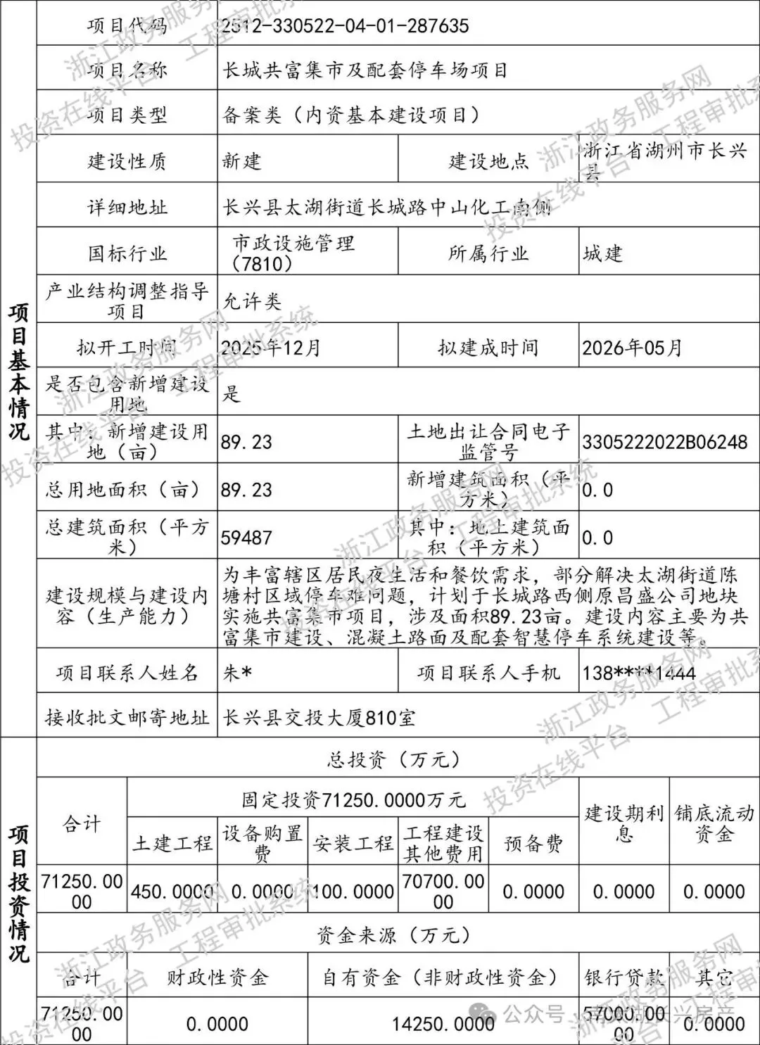 近日,长兴长城共富集市及配套停车场项目备案(赋码)信息表公开。