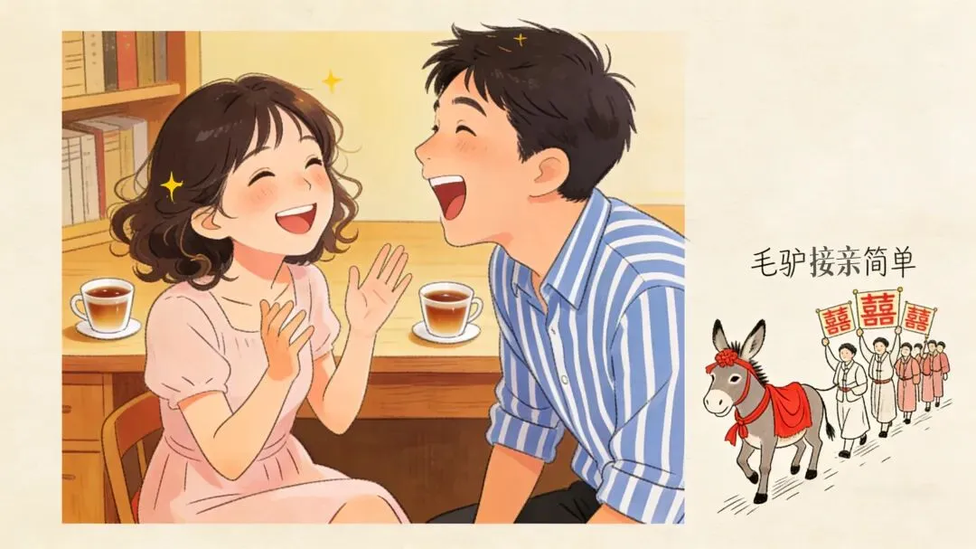 中间我们有过争执,我也因为觉得自己的期待不被理解,委屈地掉过眼泪。但我们从始至终都有一个默契:不冷战、不拉黑、不说伤人的话。哪怕当下情绪不好,缓个一两天,总会找个时机坐下来好好聊。那天聊完最核心的场地分歧,我俩其实都有点闷闷的——我觉得他不懂我对婚礼的期待,不懂这是我一辈子一次、想要被郑重对待的心意;他觉得我没懂他想用心创造独一无二的婚礼,没懂他想把钱和心思花在更有意义的地方。甚至有一天我梦见,他说:就不请婚车车队了,到时候找一头毛驴,拉个小木车去接亲,我都失落到哭了……第二天我告诉他这个梦,还调侃他一顿,逗得他哈哈大笑。