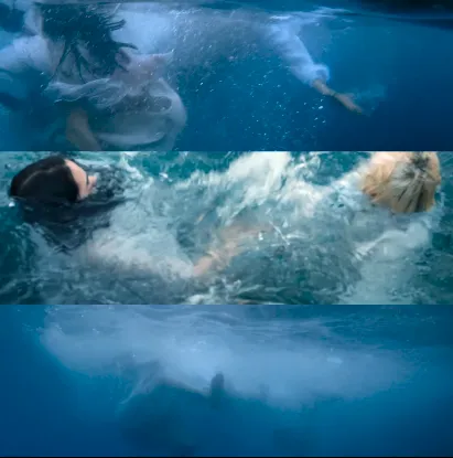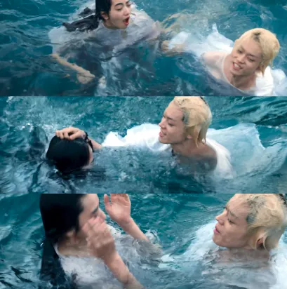 一个股溪流冲过来,小美又露出了水面,小美当时是又冷,又怕,又没劲儿,她意识到是男朋友又把他提溜起来了,还想帮帮男朋友往回游,结果俩人的劲儿不往一处使,在水里直打转。