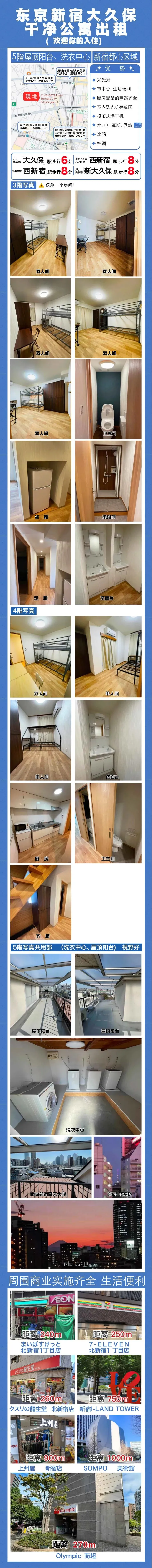 在语言学校集中区域,生活上学都很方便,没有杂七杂八费用只要一个月租金即可入住,位置在新宿附近,一个月7.5万日元。最后一个房间,仅限女生。