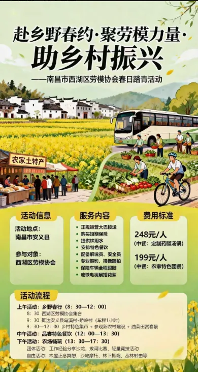 正好最近,南昌地铁全城都在刷屏宣传一个非常正规、安全、轻松的春日轻社交活动,是和劳模协会联合举办的,不是私人野团,体面、放心、安心。就是去安义乡下走走、散心、挖野菜、轻松相处,没有尴尬相亲,没有任何套路,就是安安静静认识同频的人。