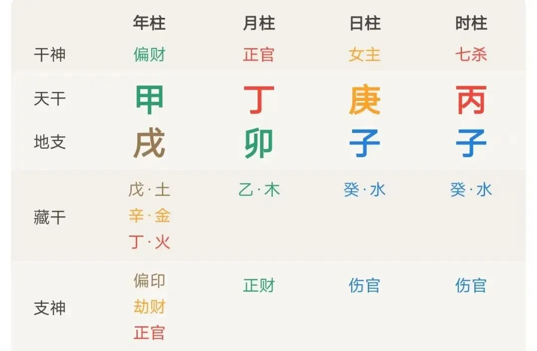 时柱代表晚年、也代表内心的归宿。时干七杀贴身,代表她极其容易被“坏男人”吸引。她交往的对象多为年龄较大、性格强势甚至有过婚史的男人(七杀之象)。