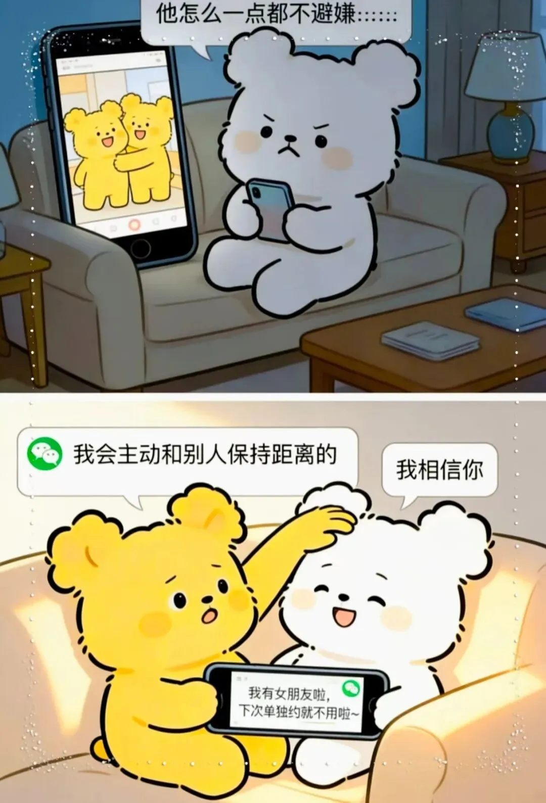 并不是说,因为有了恋爱关系,就要断绝和所有异性的关系。而是在聊天的时候不聊暧昧,在帮忙的时候懂得分寸,在遇到有越界的人的时候,毫不犹豫的拒绝,而不是享受那种被喜欢的优越感。