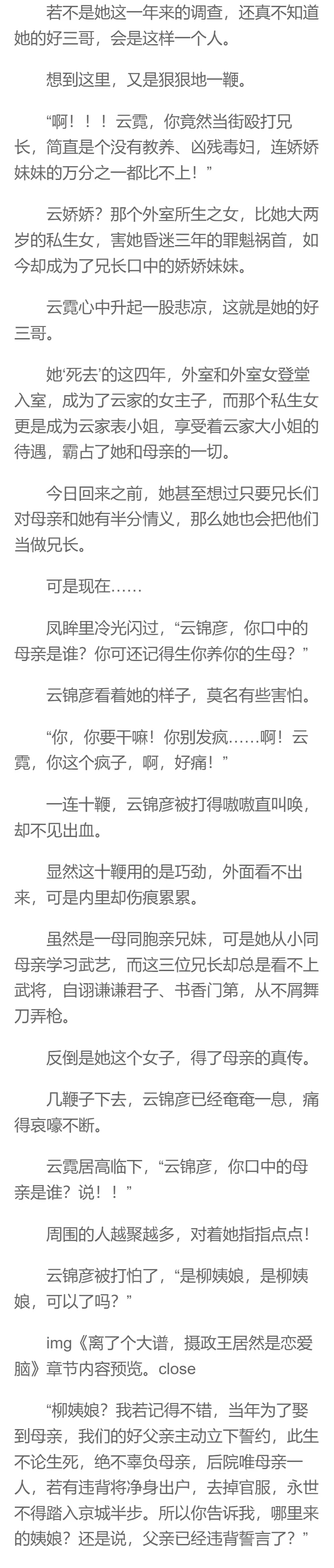 >《离了个大谱,摄政王居然是恋爱脑》:咦?摄政王是何意?不就是小时候欺负他,怎的还缠上.“一人之下万人之上,想要追你我却慢一步.”