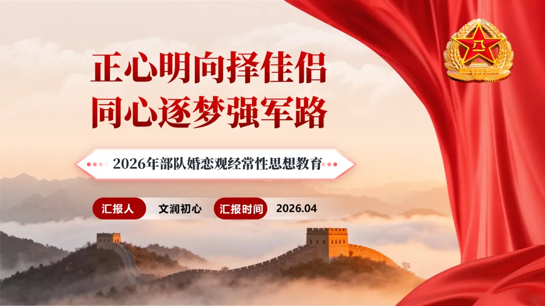 军人的婚恋,藏着聚少离多的坚守,载着保家卫国的担当,是强军征程中最动人的温暖篇章。这份《正心明向择佳侣 同心逐梦强军路》经常性思想教育,新时代官兵,直击军营婚恋现实考验,破解情感困惑、明晰价值航向。