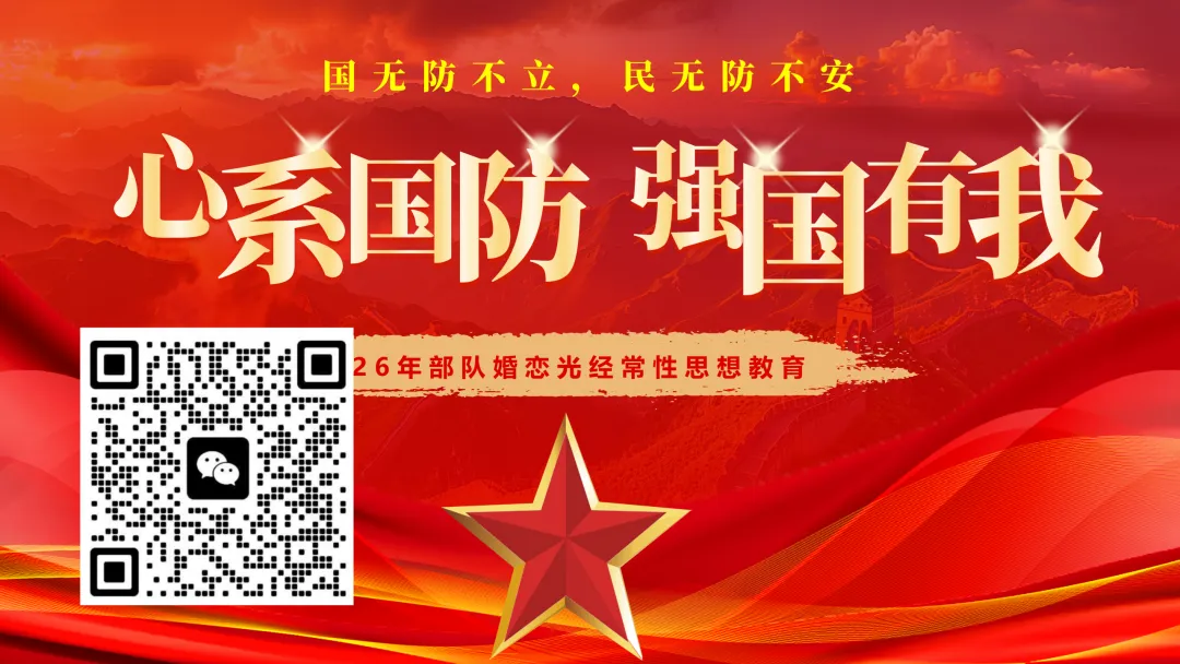 它兼顾家国大义与人间温情,教会官兵以责任守护爱情、以理解维系婚姻,让家庭成为强军事业的坚强后盾。愿每一位官兵都能觅得懂你、惜你、支持你的军旅同行人,以爱相伴、以责相守,在守护万家灯火的同时,拥抱专属幸福,让军旅荣光与家庭温暖双向奔赴!