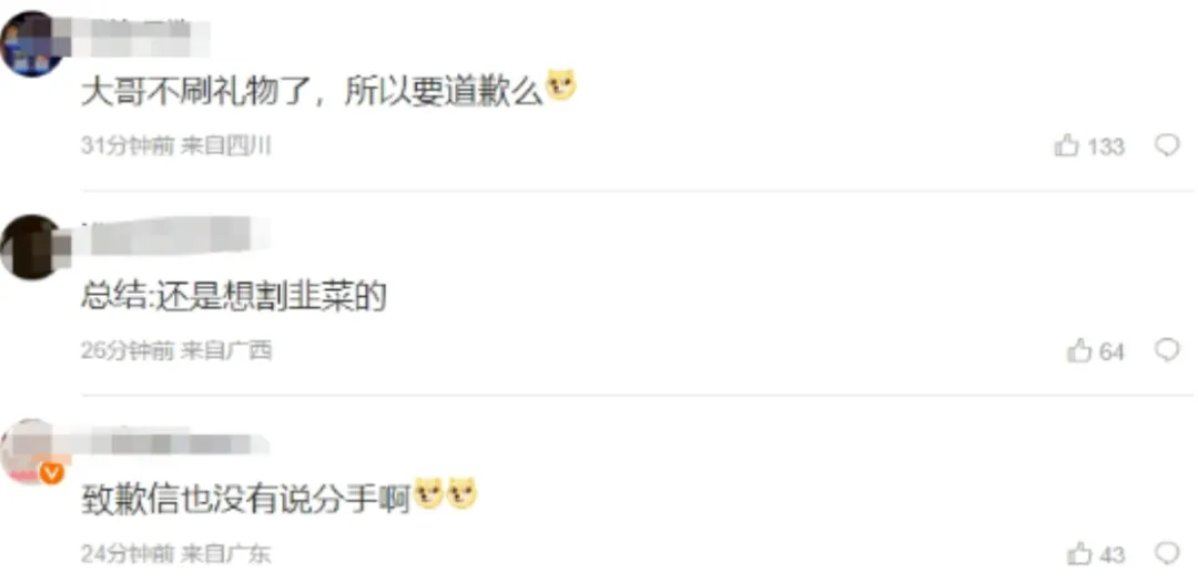 网友们纷纷吐槽,她的道歉根本不是真心悔改,不过是怕掉粉太多要赔平台违约金、影响自己赚米罢了。