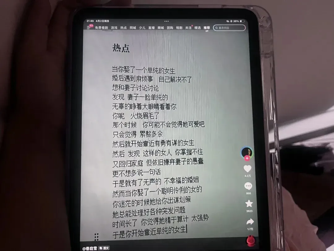 身边的朋友一个个都结婚了,生子了。我看着她们谈恋爱的时候轰轰烈烈,甜甜蜜蜜,可结婚之后,好多男生都变了。曾经说要一辈子宠她的人,变成了对她冷暴力、嫌弃她单纯、觉得她累赘的人;曾经说要永远爱她的人,转头就去靠近那些“有勇有谋”的女生,把曾经的承诺抛到了脑后。