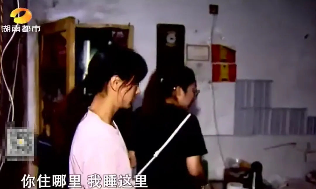 顺着她的手指看过去,十平米不到的房间里放着两张床。