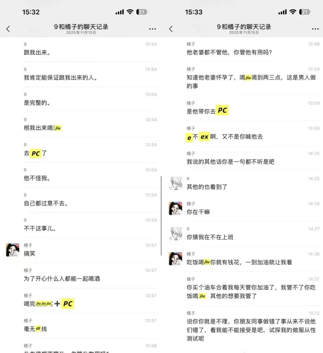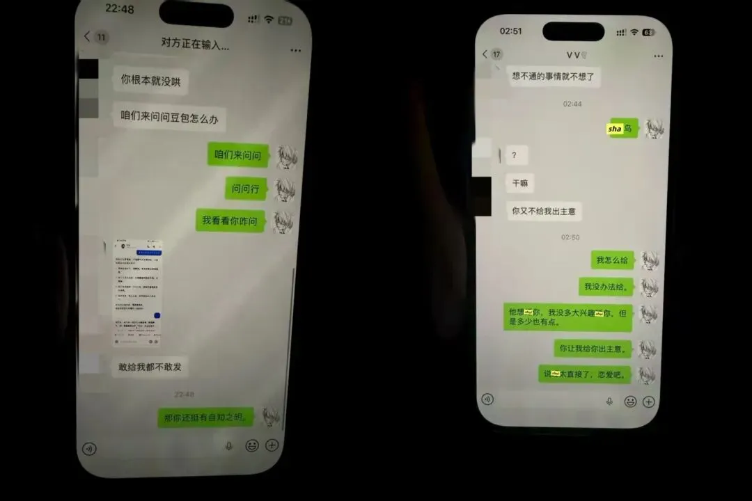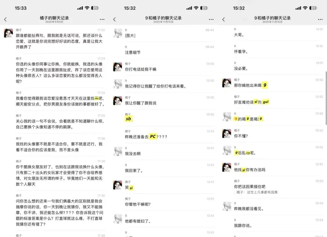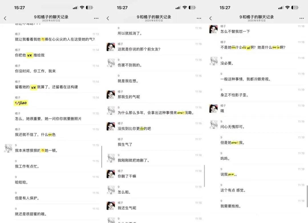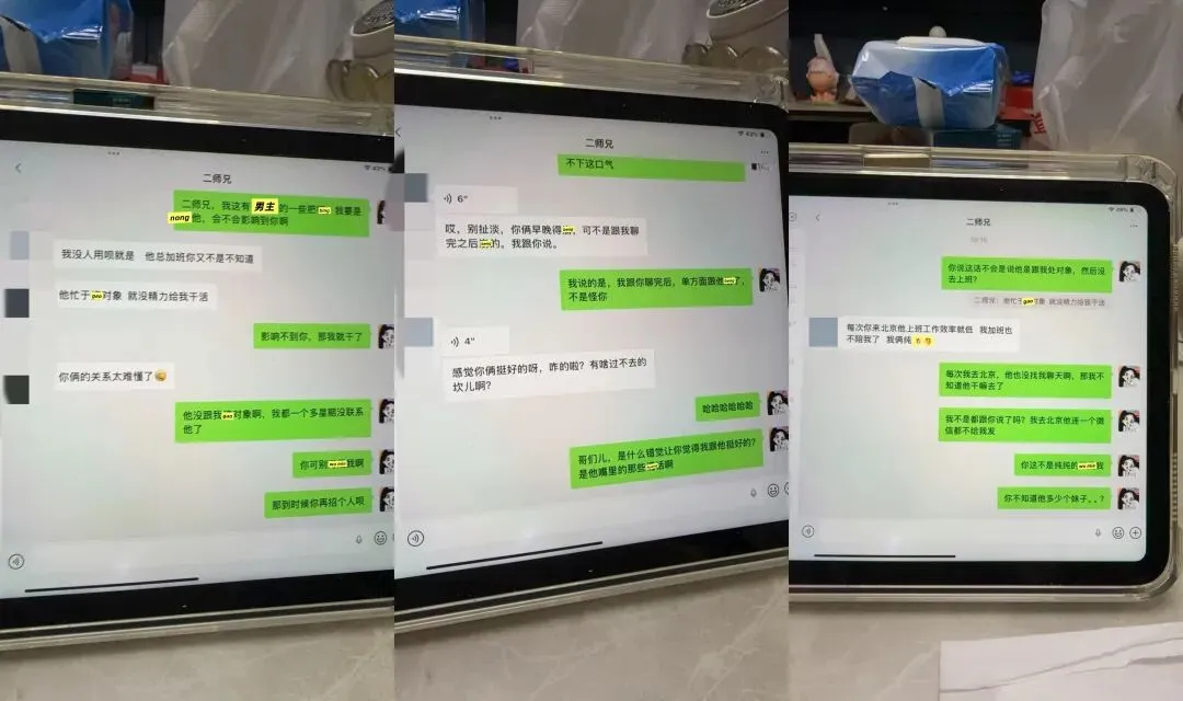 我一直ma他,男方的同事还准备带他去pc,说了让他别和这种人联系,不听,瞒着我和别人吃饭喝9。物以类聚人以群分。(他依旧在聊sao,哈哈哈哈哈哈哈)