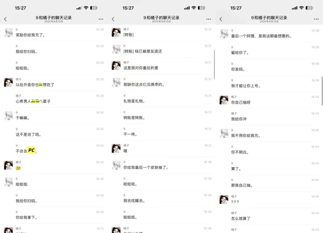我和男方打游戏一言不合就开ma,什么都是我的错,锅也是我背。(充皮肤转账不收,我给他充进去花的钱)