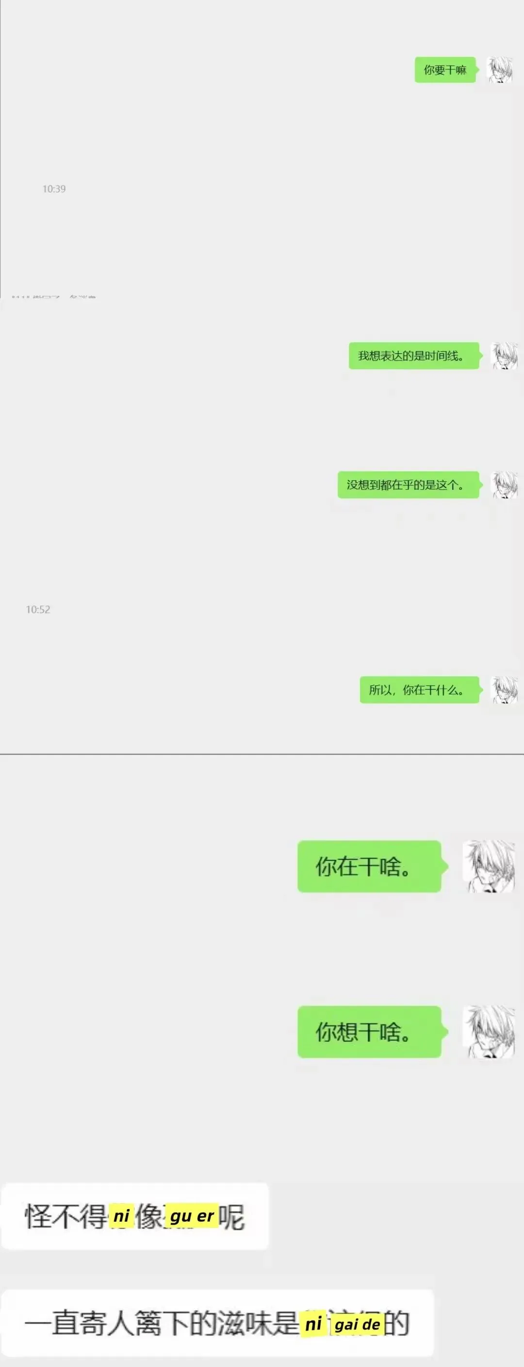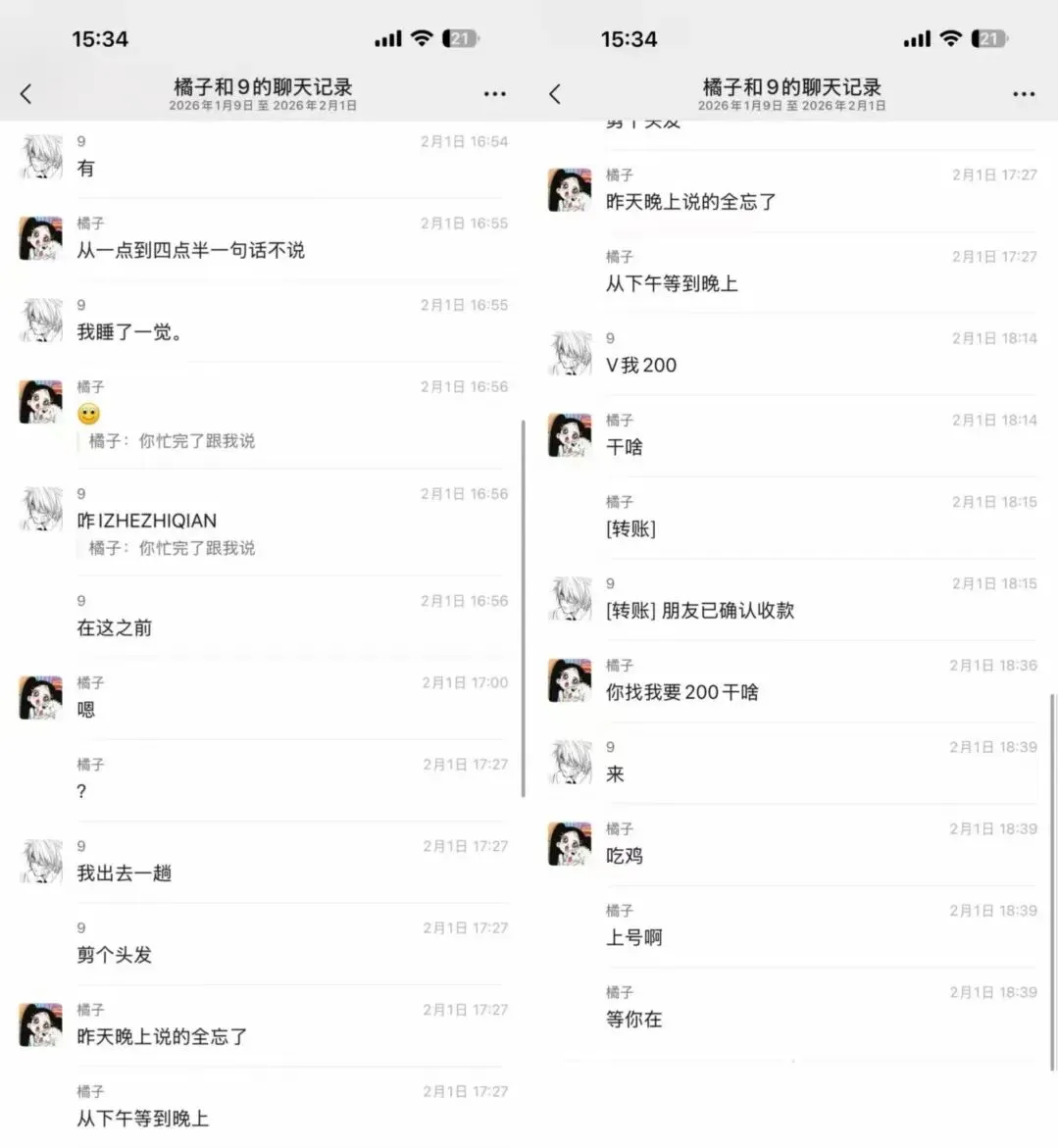 p1,换情侣头像(柯南+小兰),男方的女同事说,之前有个男同事用的头像和他的很像,他就把情侣头像换了。