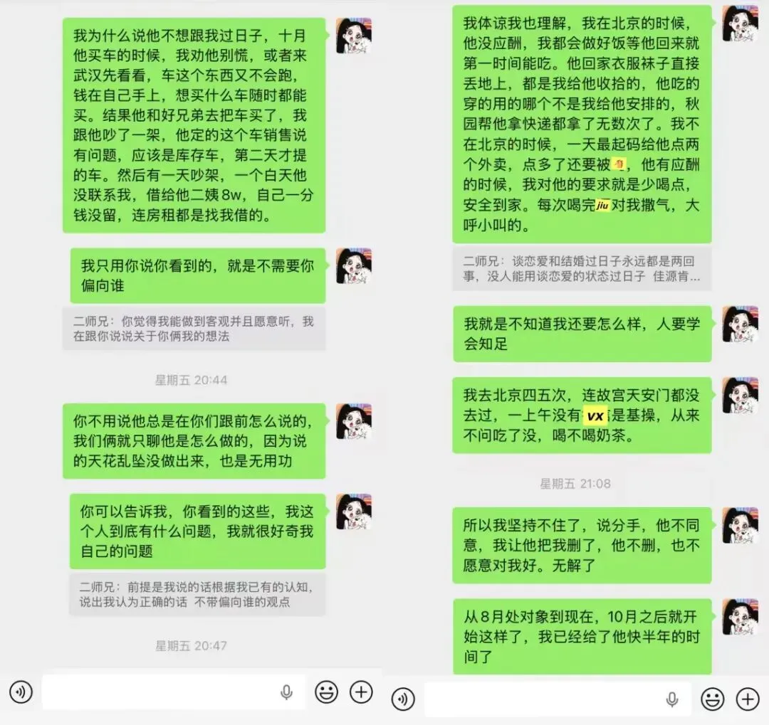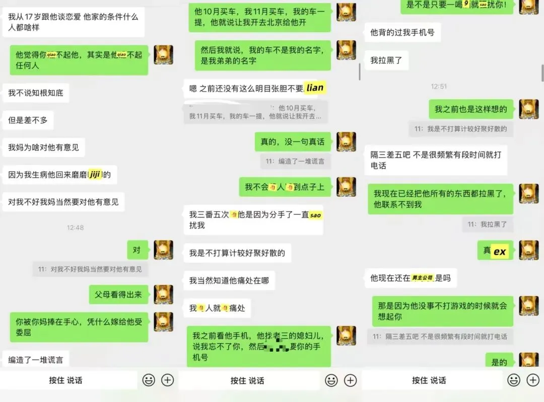 因为男方的一条官宣的朋友圈,他的前女友ma他,当时我在共情他,现在算是知道为什么了。