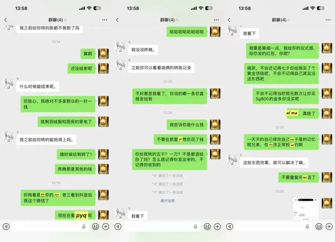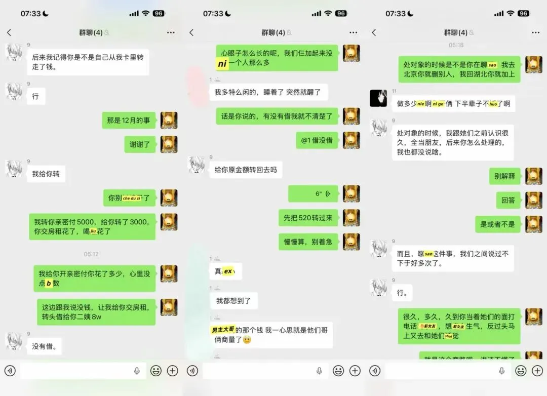 后续如下:p1处对象期间的mi码一直是爱初恋99。p2我拉群质问男方,他让我别gao他了。他想解决问题,但是他不承认、不认错、不道歉。
