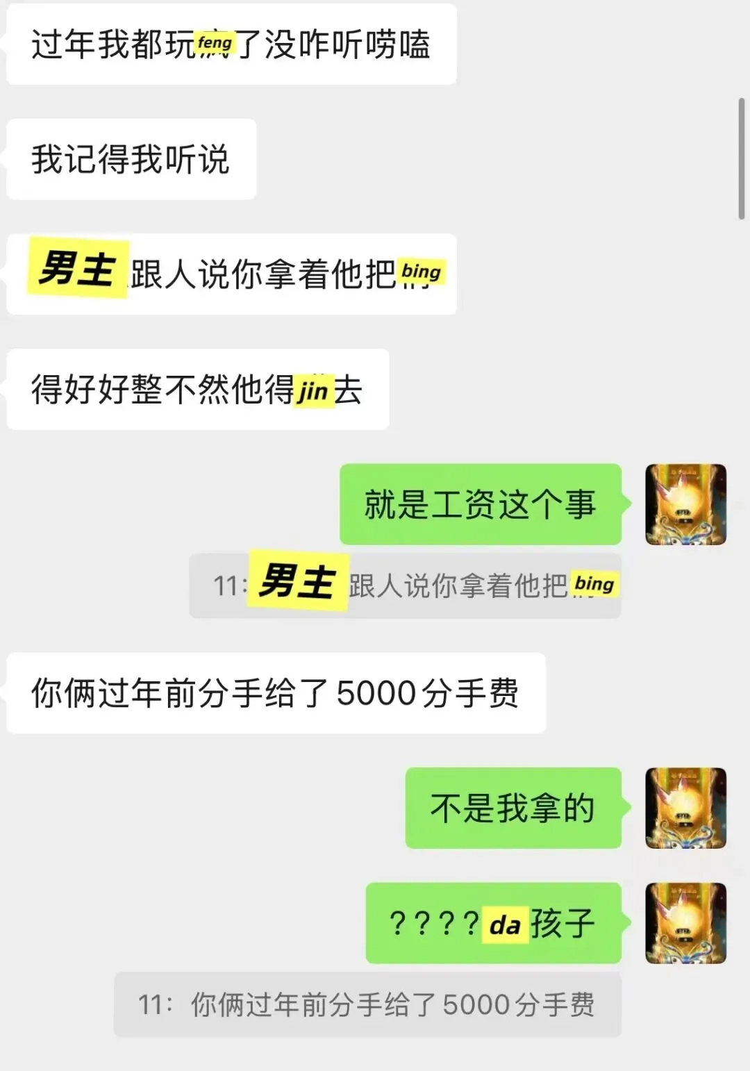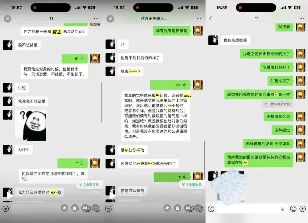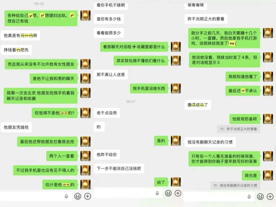 男方的前女友ma他,他截图五句无关紧要的内容,让我误会前女友。