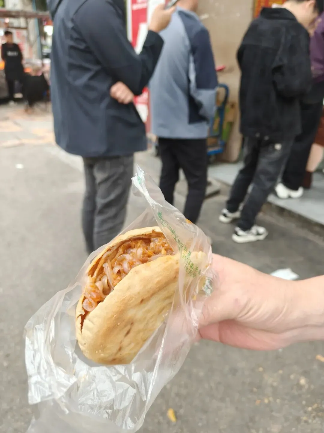 一路上我念叨着,下车第一时间去吃南充锅盔,我上学就喜欢吃锅盔夹凉面,红油拌的凉面加一些菜丝丝,夹在刚出炉脆脆的热热的锅盔里,又解馋又管饱。