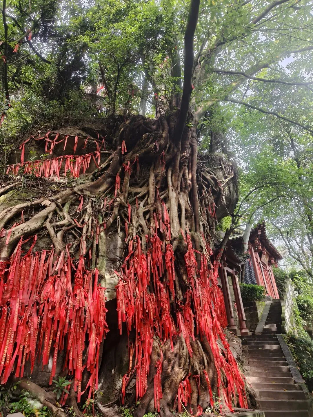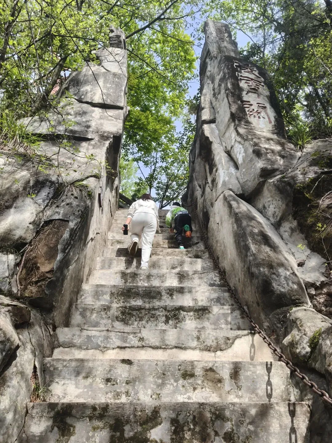 几分钟车程就到山脚下了,我也是没想到的,南充的山这么近距离包围着城市,沿石阶往上,山里的温度一下子凉快了几度,空气好清新。