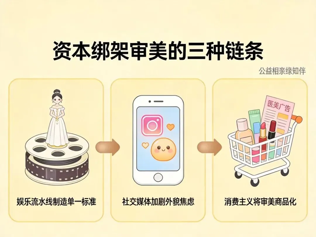我是缘老师。关于资本绑架审美现象,你怎么看?欢迎在评论区分享你的故事和看法。关注公众号「公益相亲缘知伴」,每周五深度解读婚恋热点,教你用理性守护自己的婚恋幸福。