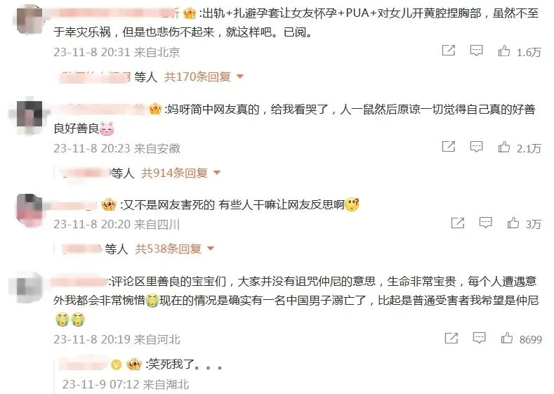 此人身上的争议多到什么程度呢?大概就是2023年他在巴厘岛溺亡时,热搜前排竟然飘满了“开香槟”,还有网友直接称呼仲尼之死为“喜讯”。