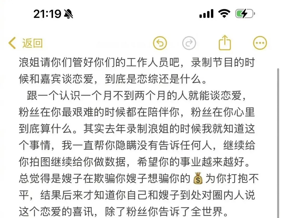 4月1日直接发帖喊话《浪姐》节目组,上来就是一句“请管好你们的工作人员”。