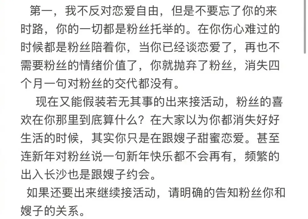 消失四个月,对粉丝没有一句交代;频繁出入长沙,也只是为了和伴侣约会;甚至连新年,都没对粉丝说过一句新年快乐,如今却能若无其事地出来接活动,把粉丝的喜欢踩在脚下。