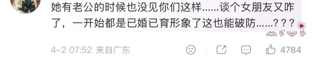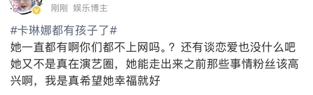 路人觉得卡琳娜一不贩卖男友/女友幻想,二连女儿都有了谈恋爱不是很正常,三又不是靠粉丝打投出道的纯血爱豆,至于闹出这么大争议?