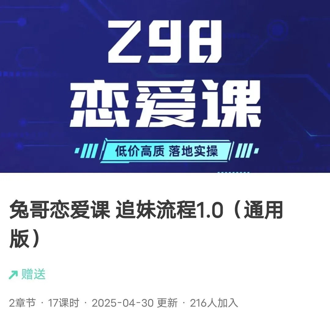 🎉 「会员免费」 流氓兔雨哥:《重塑恋爱力》7节,《互联网顶级把妹玩法》17节,《免哥恋爱课 追妹流程1.0》17节