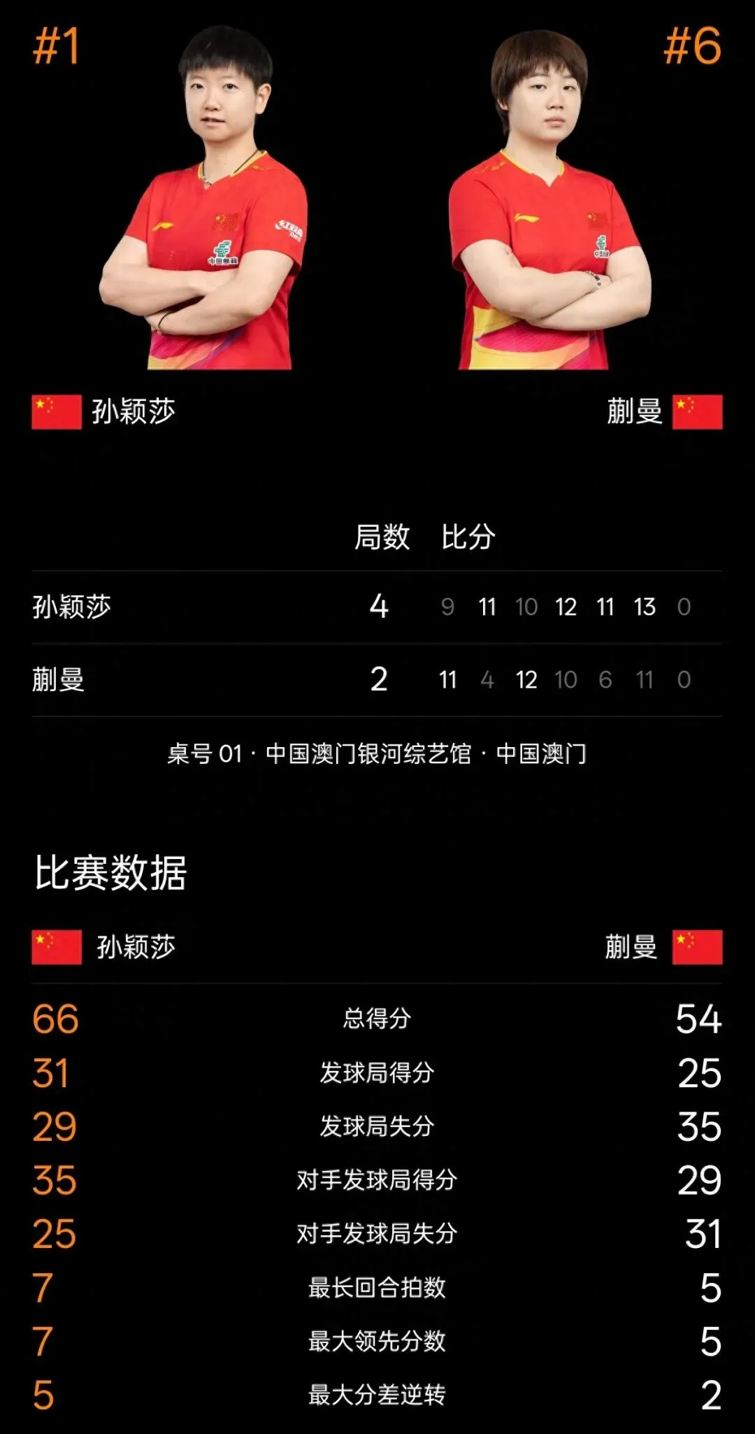 再来说说“耍阴招击败蒯曼”这个谣言。蒯曼也是国乒队里一颗冉冉升起的新星,实力不容小觑。在一次比赛中,孙颖莎和蒯曼狭路相逢,这场比赛本就是一场精彩的对决,双方都拼尽了全力。最终,孙颖莎凭借着更稳定的发挥和更出色的技术赢得了比赛。
