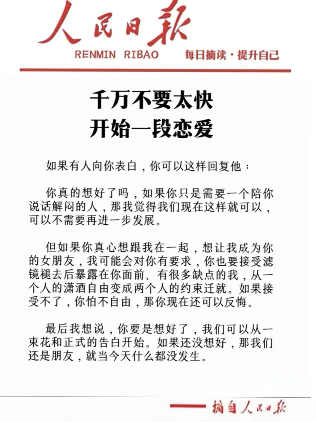 >千万不要太快开始一段恋爱@人民日报每日文摘