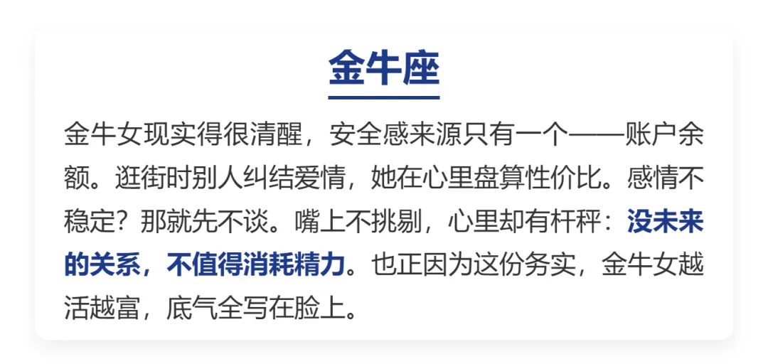 生活里.总有.些女生,年轻.时也为.感情.熬过夜、掉过泪。后来她.们突然.清醒了,不是.被伤怕.了,而是.想明.白了:靠谁.都不如.靠自己。爱情可.以有,但绝不.能耽误.赚钱。今天咱.们就.聊聊,彻底.戒掉.恋爱.脑,一心只.搞钱的三大.星座.女。