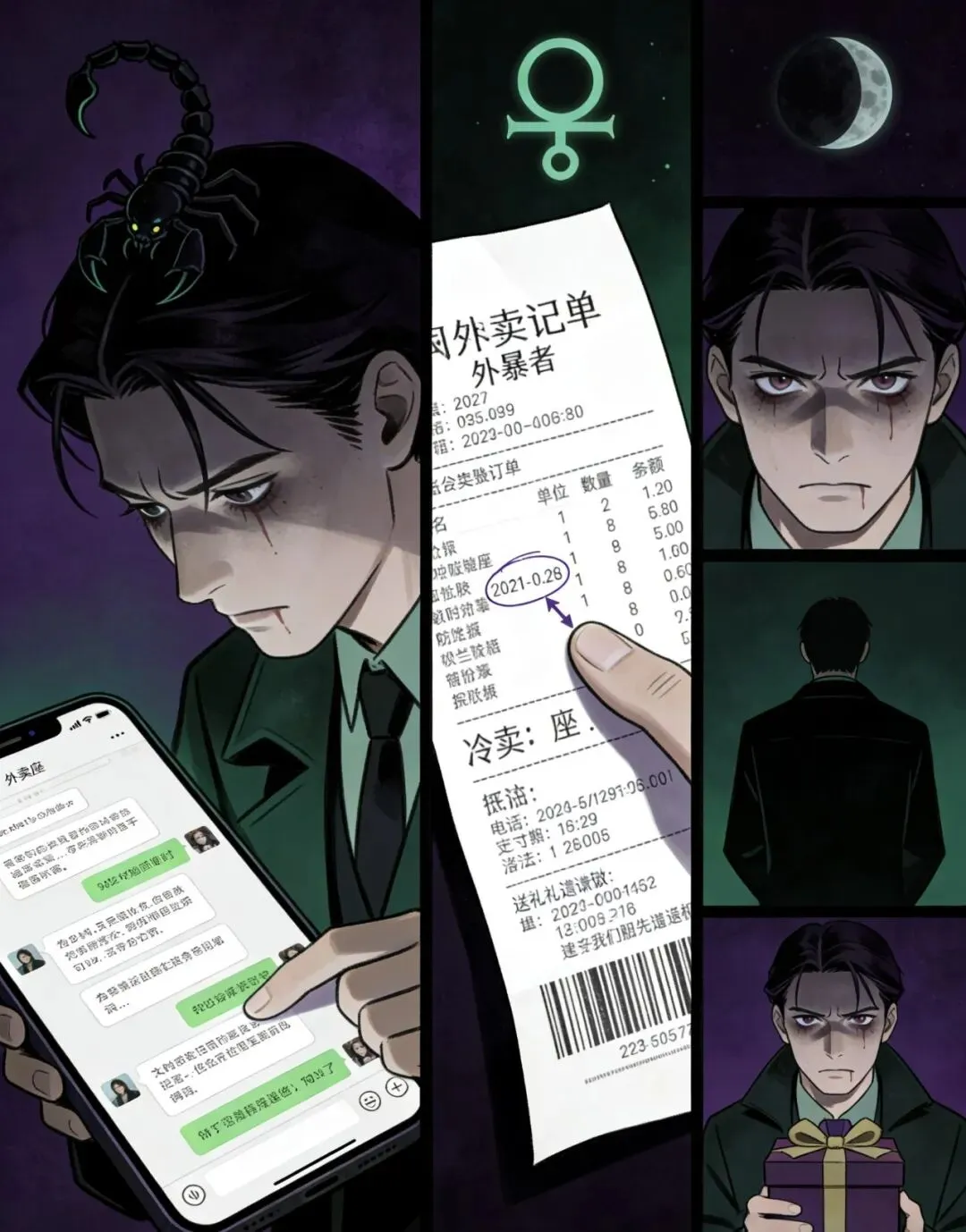 他们像破案一样检查你的聊天记录,甚至分析你的外卖订单。冷暴力与甜蜜交替,前一天冷战,后一天又送礼物道歉,让你陷入他还在乎我的错觉。冥王星守护的天蝎,将忠诚视为感情的底线,但他们的安全感建立在掌控之上。他们害怕被背叛,所以会怀疑你,不断分析你的细节。
