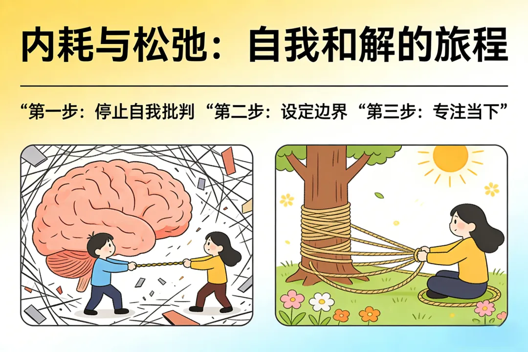 内耗就像一场没有硝烟的战争,战场在我们的脑子里,敌人是我们自己。与其在爱里自我拉扯、窒息内耗,不如试着给自己“松绑”,做好这3件事,慢慢找回松弛感。
