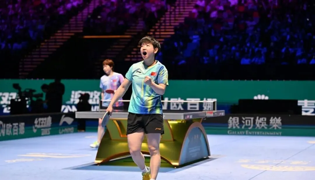 2026年4月2日,澳门单打世界杯女单八分之一决赛,世界排名第一的孙颖莎对阵队友蒯曼。 这场比赛打得异常激烈,前四局战成2比2平。 由于澳门场馆闷热,高强度对抗让两人的球衣早已被汗水浸透。