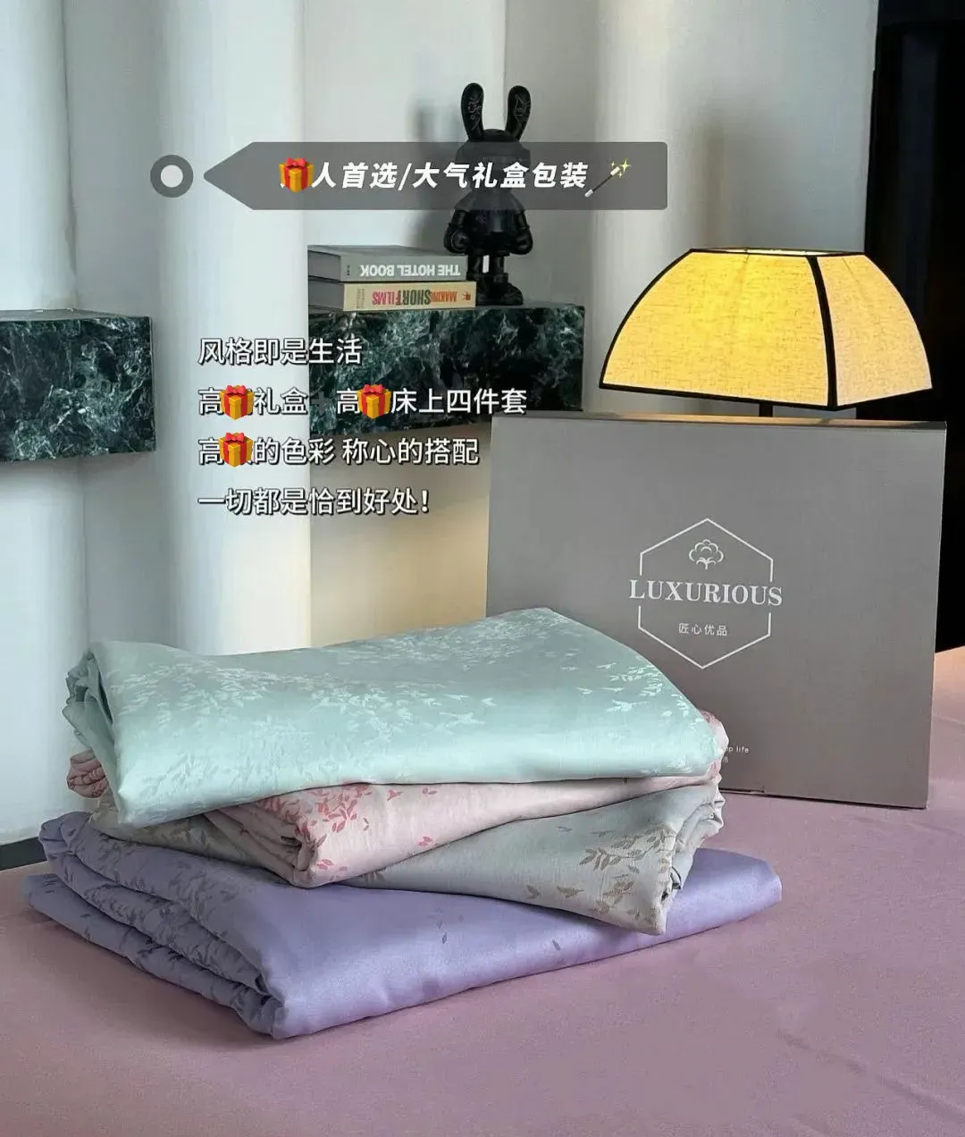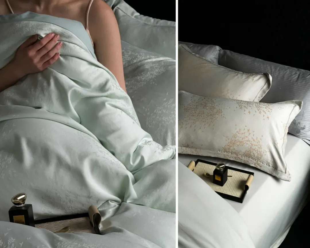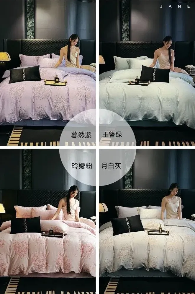 这款「金枝玉叶」四件套,采用的是天丝面料。