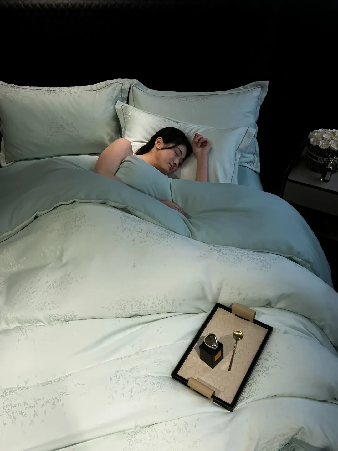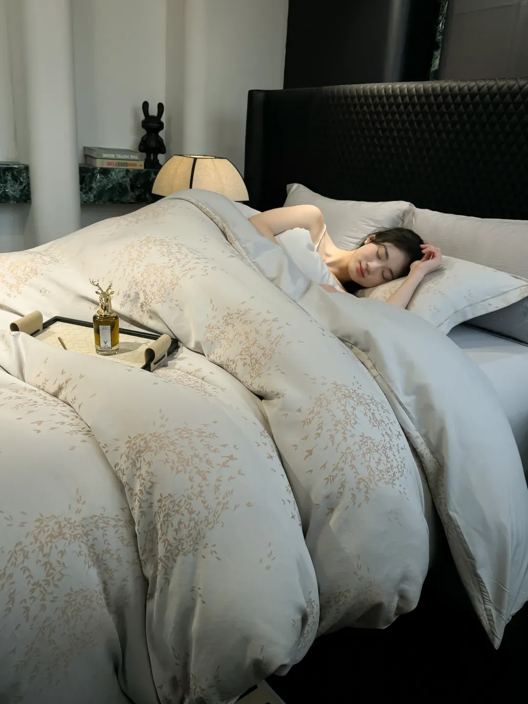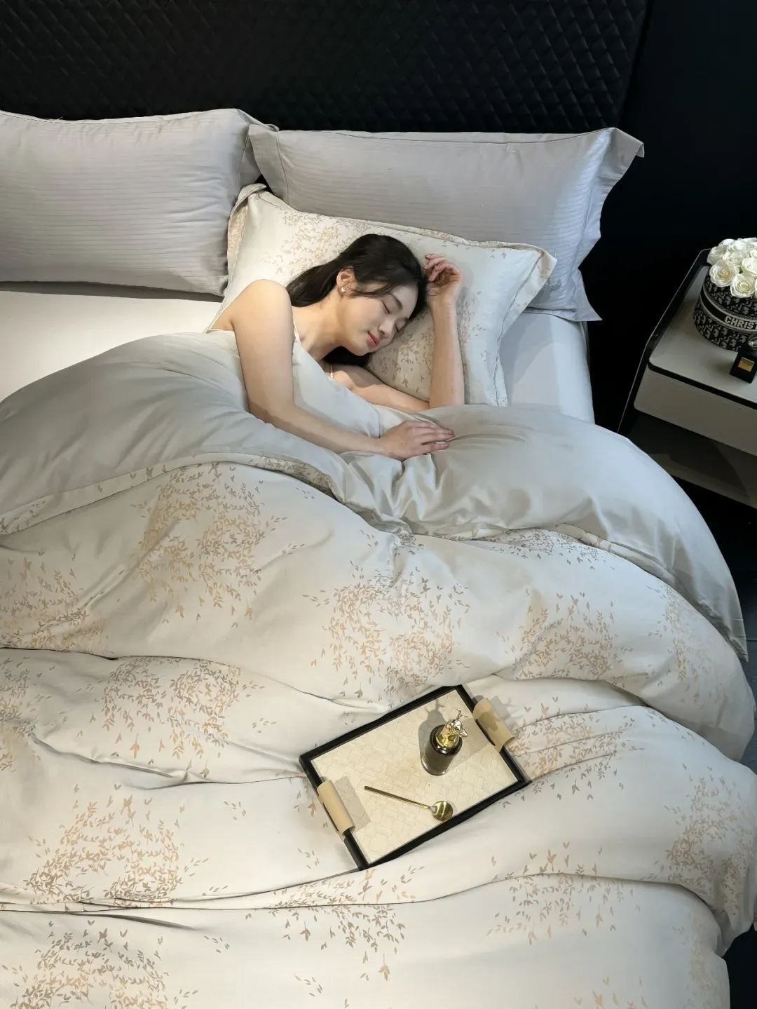 这款「金枝玉叶」四件套,采用的是天丝面料。