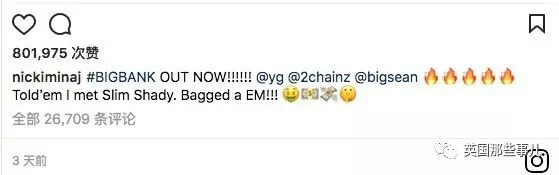 事情起因是麻辣鸡在inst上宣传她和YG,2 Chainz,Big Sean合作的新单曲《BIG BANK》,