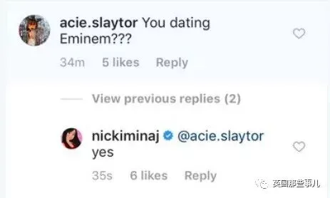 iayeo:逗粉丝的,别当真。互动这么频繁可能要合作了,Nicki说了两个人第一次约会在录音室。