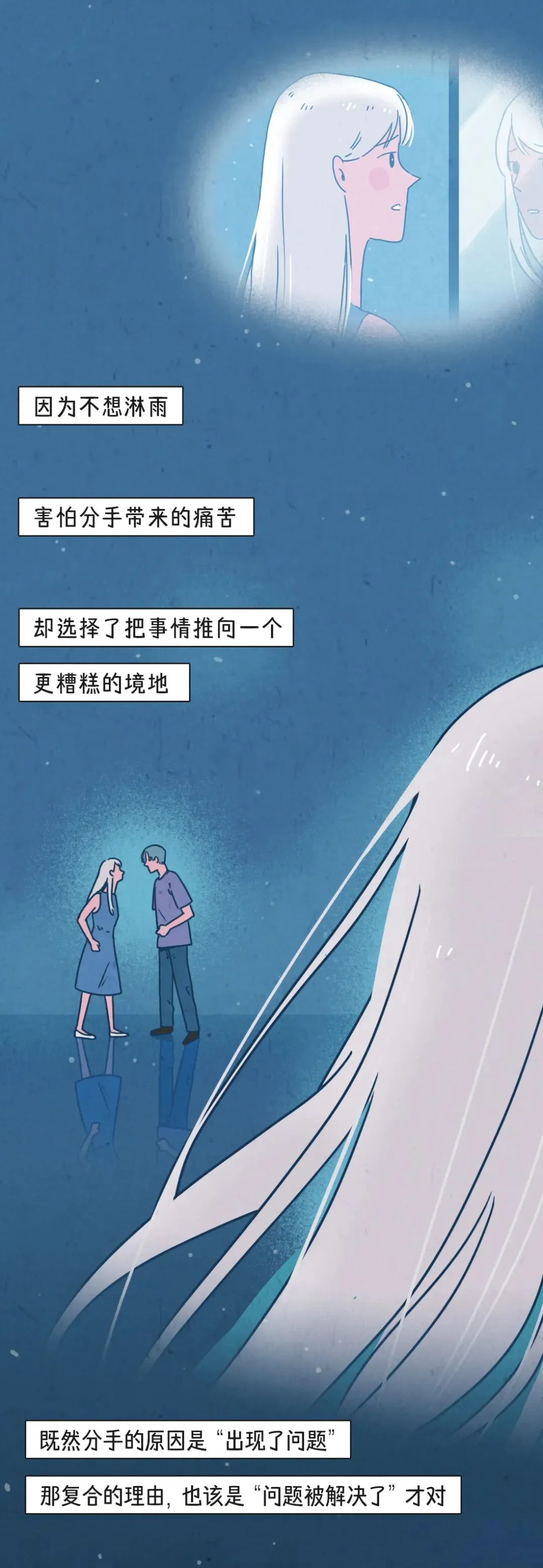 回想起来,18岁时会选择重新在一起的我们,总是自欺欺人地对分开的原因避而不提,那些没被解决的问题,也依旧横亘在感情里,导致下一次、或是下下一次,仍然因为同样的问题而分开。