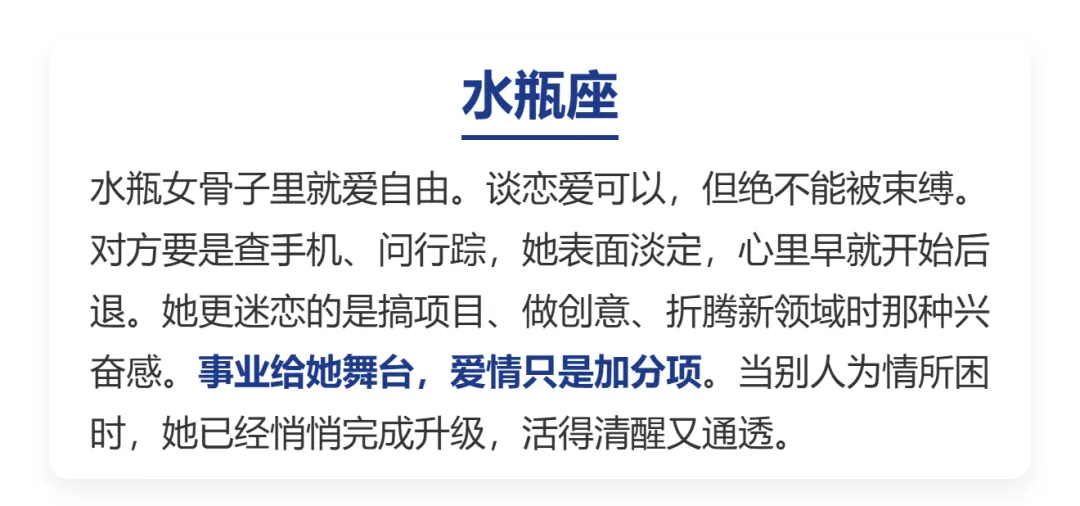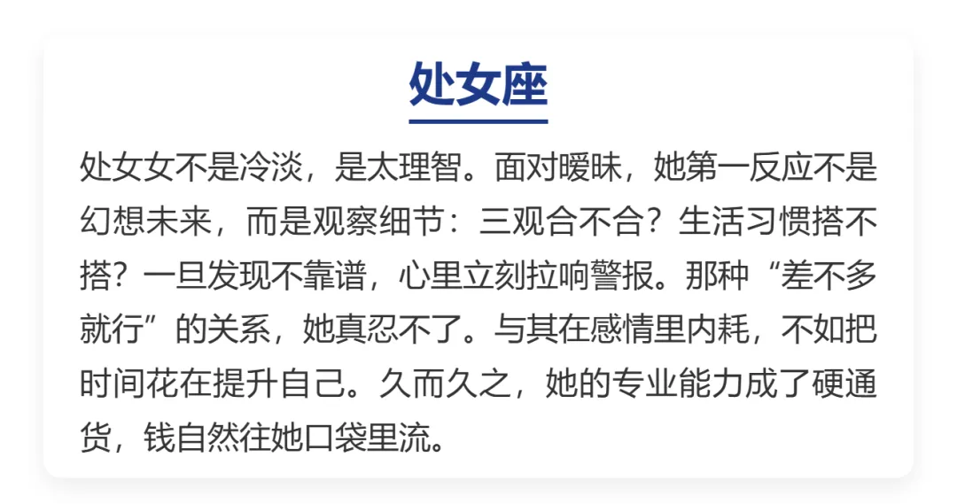 有些女生,一谈恋.爱就.把全世.界交出.去;可也有些.人,心里拎.得清。她们.不是不渴.望爱.情,只是.更明白,安全.感这.东西,靠谁都.不如靠自.己。今天.咱们就.聊聊,那些不.恋爱脑、专心搞.事业,钱包越.来越.鼓的星座.女。